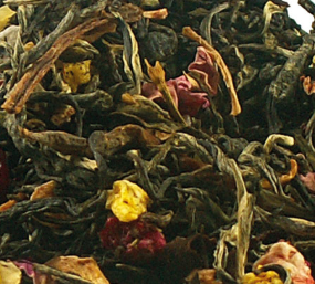 Witte en groene thee, mangostukjes, aardbeistukjes, rode bessen, jasmijnbloemen, osmanthusbloemen, rozenblaadjes, natuurlijk aroma.