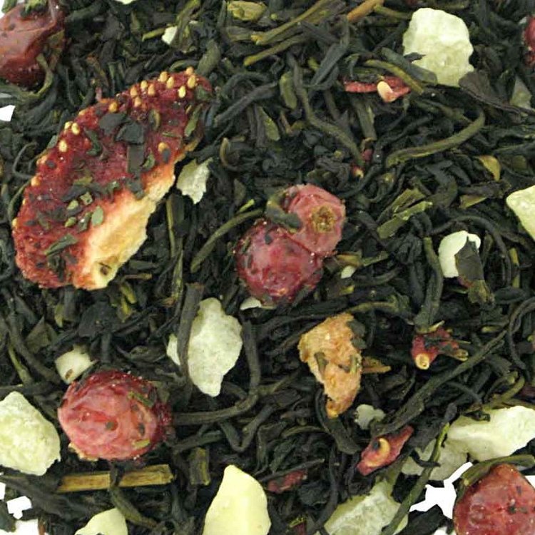 • Een smakelijke groen/zwarte theemelange met fruitige smaken die mooi tot hun recht komen.