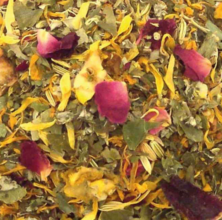 frambozenblad, venkel, bramenblad, aardbeiblad, zonnenbloembloesem, anijs, goudsbloembloesem, rozenbottelschil, appel, aroma, HAZELNOOTBLAD, melisseblad, weegbree, rozenbloesem, koningskers, vlierbessenbloesem, vlierbessen, pepermunt.