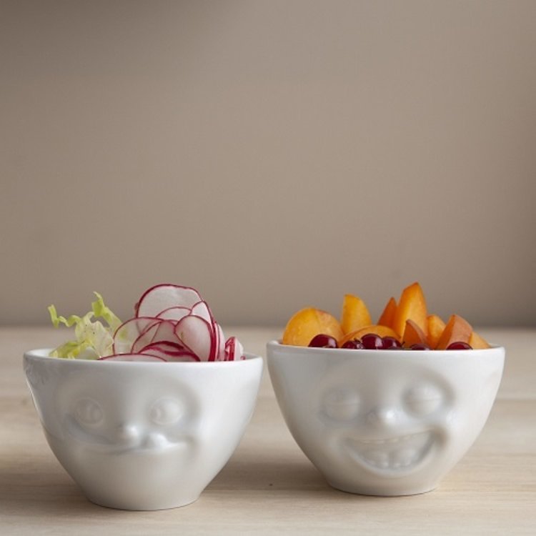Het grappige servies van het Duitse merk Tassen tovert ongetwijfeld een grote glimlach op je gezicht. De verschillende gezichtsuitdrukkingen zijn ontstaan vanuit een computeranimatie en zijn zichtbaar in het hele assortiment op kop en schotels, bekers, schaaltjes in diverse afmetingen, eierdopjes en een theepot.