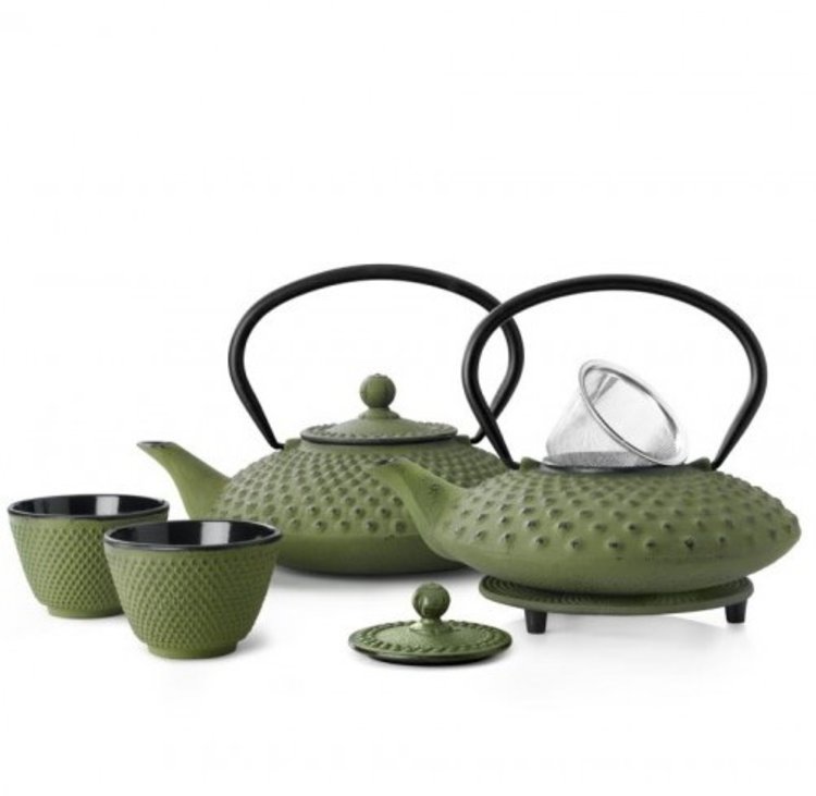 • Elegant en Japans design komen samen in de Bredemeijer gietijzeren theepot Xilin groen verkrijgbaar in 0,8 en 1,25 liter