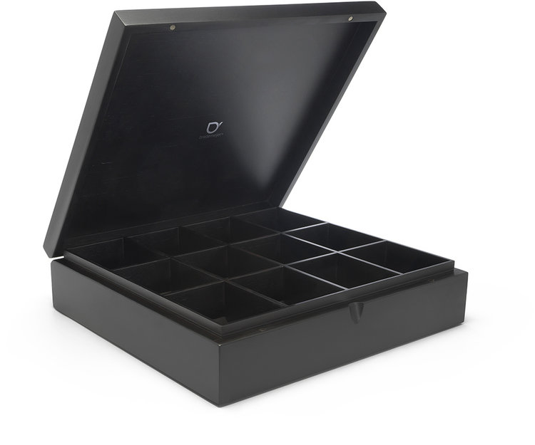 De Bredemeijer Theedoos 12 vaks Bamboe Zwart is een theedoos gemaakt van bamboe hout met een mooie onzichtbare magneet sluiting en 12 vakken. In een theedoos kun je geordend je verschillende theesoorten bewaren. Zo heb je ze snel het overzicht. Voorverpakte theezakjes liggen daarbij voor de hand maar als je graag losse thee wilt bewaren kun je dat prima doen door je thee voor te verpakken in theezakjes die je zelf kunt vullen. Vouw ze dubbel en bewaar ze in je theedoos. Sluit de doos wel af, zo blijven je smaken goed bewaard.