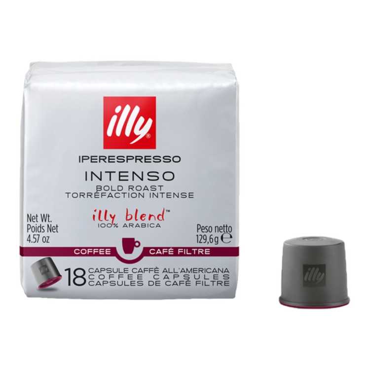 Het bereiden van Illy IperEspresso Intenso Americano maakt het makkelijker voor iedereen met de Metodo Iperespresso capsules. In deze innovatieve capsules is alles al geregeld. De juiste hoeveelheid Illy koffie, op juiste wijze gemalen, met de juiste kracht aangedrukt. De capsule fungeert zelf als een extractiekamer en laat een fluweelzachte espresso na. Het mooie is dat de koffie nooit in aanraking met de machine komt, waardoor onderhoud tot een minimum beperkt blijft. De normale branding is bijzonder geschikt voor bereiding van espresso’s. Het geheim van IperEspresso bestaat uit de capsules die altijd de goede hoeveelheid koffie bevatten. Dit in combinatie met het systeem dat altijd de perfecte temperatuur, druk en tijd regelt, zorgt ervoor dat u thuis de lekkerste koffies zet. Samen met Illy geniet u thuis nu ook van intense, fluweelzachte en aromatische espresso's, bekroont met een prachtige hazelnootkleurige crèmelaag. Illy, ook wel genoemd Illycaffè verkoopt over de hele wereld, inmiddels in meer dan 140 landen, een unieke koffie van hoge kwaliteit bestaande uit negen soorten zuivere Arabica koffiebonen. Arabica koffie bonen hebben een rijkere smaak en een lager cafeïne-gehalte dan Robusta bonen. De koffiebonen voor de Illy koffie zijn afkomstig uit Zuid-Amerika, Centraal Amerika, India en Afrika en de unieke mix van deze bonen zorgt ervoor dat elk kopje Illy koffie overal ter wereld exact hetzelfde smaakt. Vlak na de oprichting van Illy in 1933 ontwikkeld Fransesco Illy een revolutionair systeem voor het bewaren van koffie, namelijk het luchtdicht verpakken onder druk. Door deze vorm van verpakken kan de koffie heel lang goed blijven en daardoor kon Fransesco Illy in de jaren 30 al koffie door heel Italië distribueren. Deze verpakkingsmethode, in blik, kenmerkt Illy koffie nog steeds.