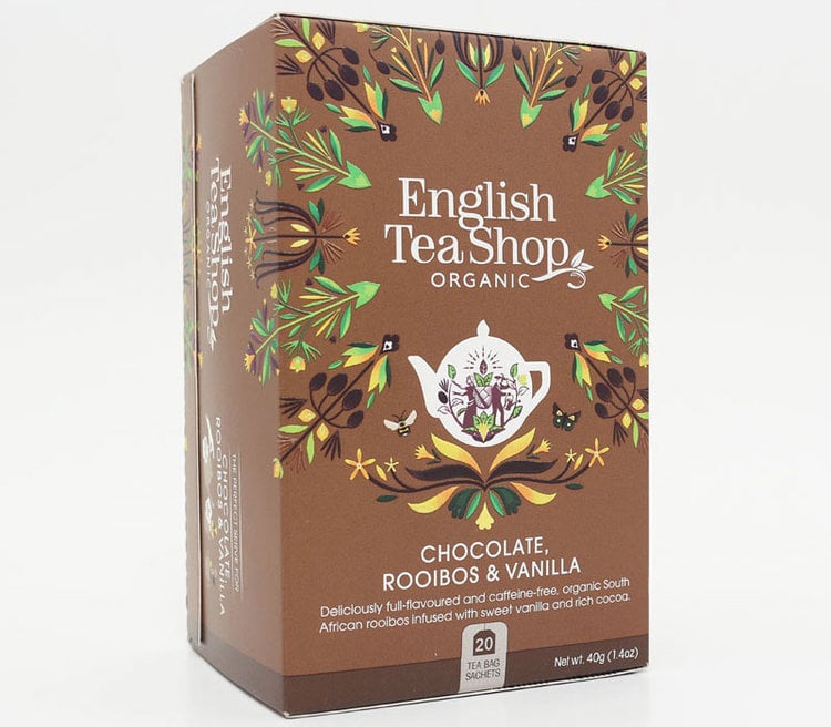 Rooibos, vanillestokjes, cacaobonen met natuurlijk chocolade-aroma, natuurlijk vanille-aroma.
