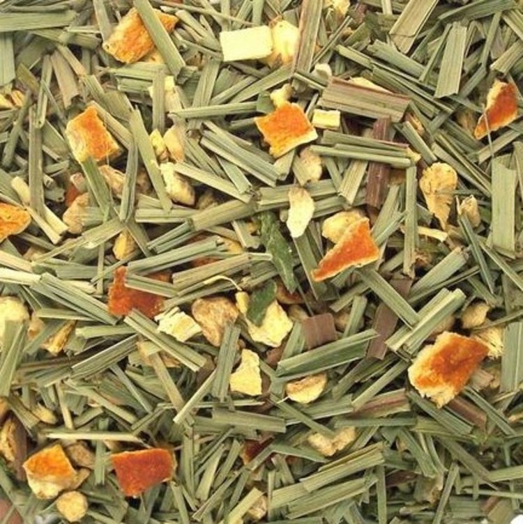 Gember, lemongrass, zoethout*, gembergranulaat, sinaasappelschil, pepermunt, zwarte peper, rozenblaadjes.
