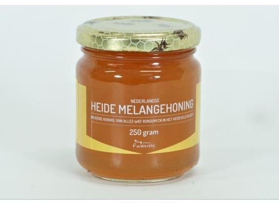 Heidemelangehoning is een bijzondere honing die vrijkomt bij de eerste keer slingeren van heideraathoning. Het heeft een licht pittige smaak met een vleugje heide, afkomstig van de nectar van de heidebloemen.