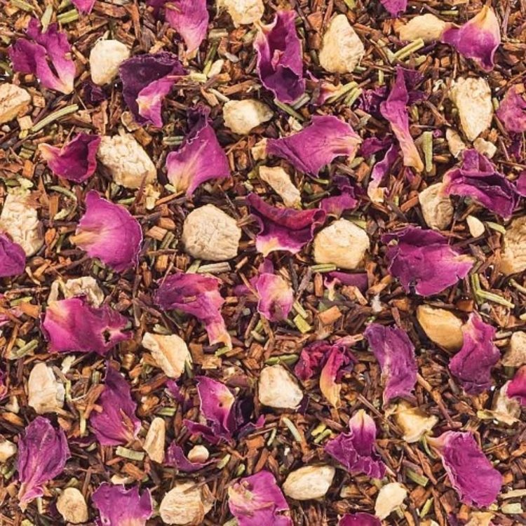 Rooibos, rozemarijn, gemberwortel, rode rozenblaadjes, natuurlijk aroma.