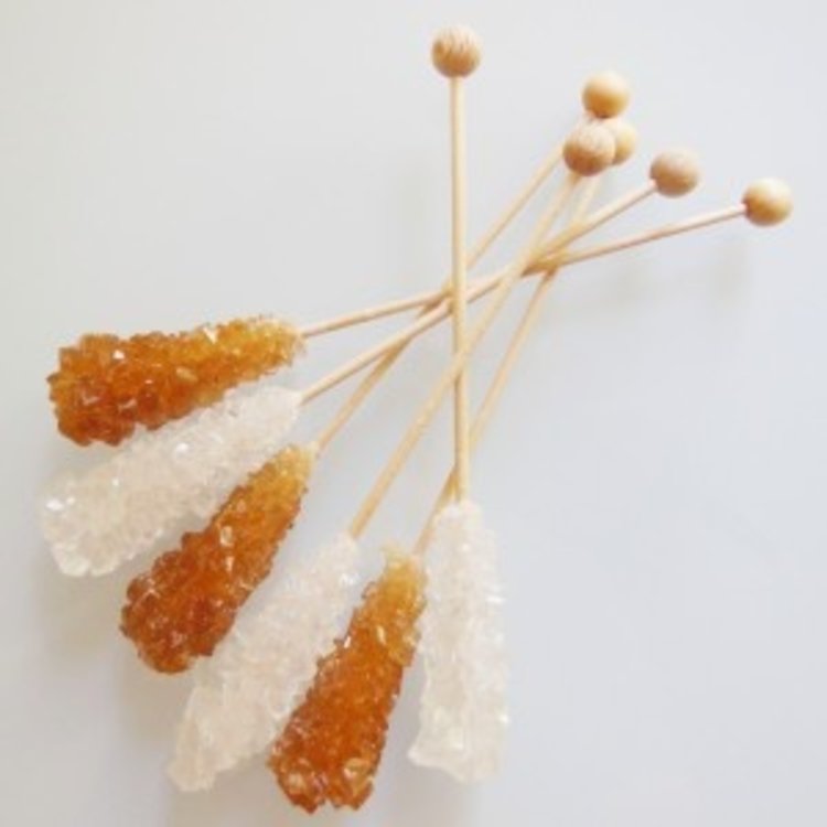 3 stuks bruine en 3 stuks witte kandijsuiker op een stokje