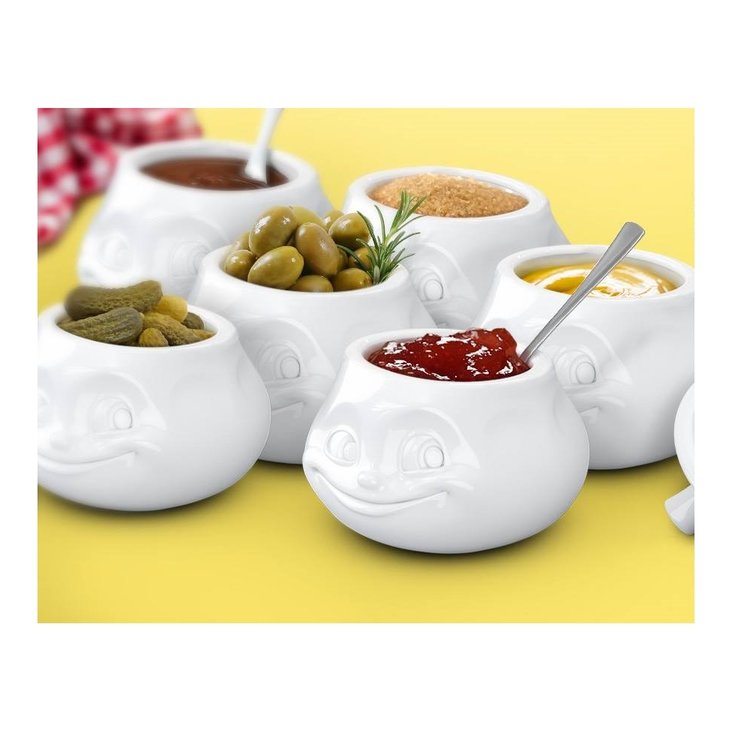 Het grappige servies van het Duitse merk Tassen tovert ongetwijfeld een grote glimlach op je gezicht. De verschillende gezichtsuitdrukkingen zijn ontstaan vanuit een computeranimatie en zijn zichtbaar in het hele assortiment op kop en schotels, bekers, schaaltjes in diverse afmetingen, eierdopjes en een theepot.