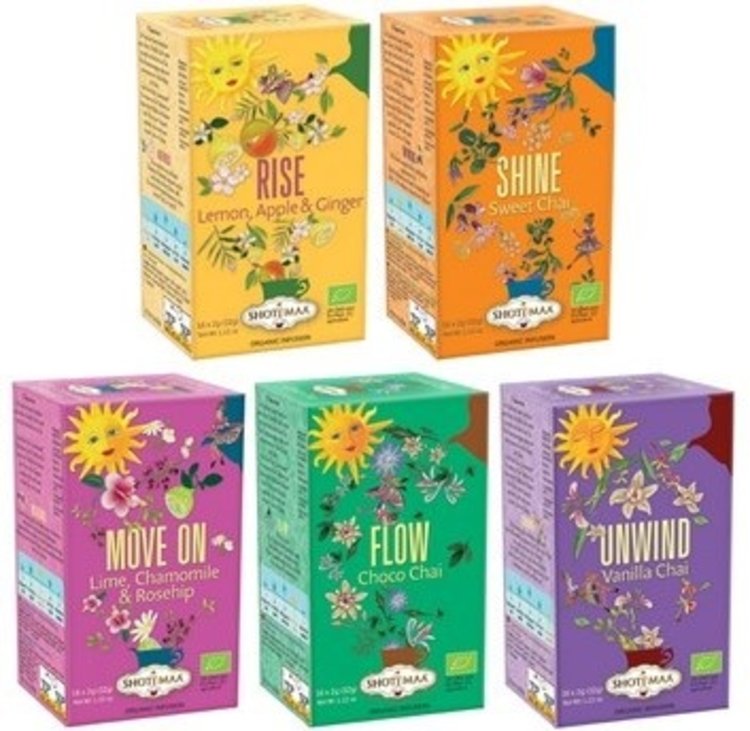 Gember (20%), appel (6%), witte hibiscus, kaneel, zoethout, citroen extract (3%), laos, zwarte peper, pepermunt, kurkuma, kardemom, kruidnagel.
