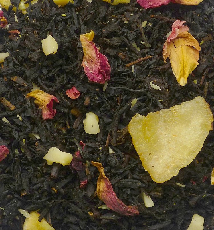 Zwarte thee, bananenchips (banaan, kokosvet, rietsuiker), kokosrasp, amandelen, natuurlijk aroma, aroma, rozenblaadjes.