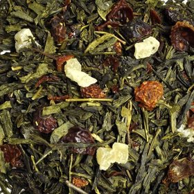 Groene thee, witte thee, verbena, rabarberstukjes, korenbloemen, aroma