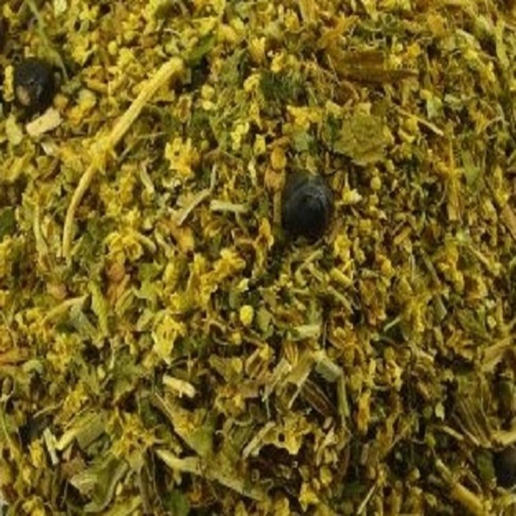 Ingrediënten: vlierbloesem, brandnetelblad, chiroreikruid, graswortel, jeneverbessen, sarsaparillawortel, weegbree groot, anijszaad, duivenkervel.