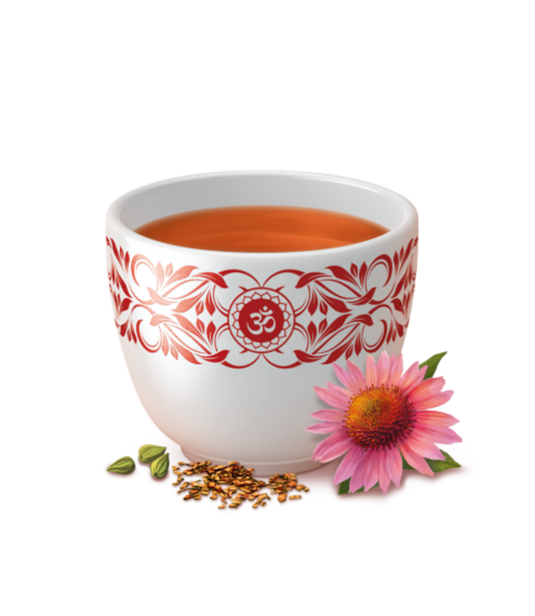 Kaneel, Echinacea, gember, venkel, rooibos, geroosterde cichorei, carob, kardemom, basilicum, kliswortel*, zwarte peper, kurkuma, tragacant, vanillebonen.
